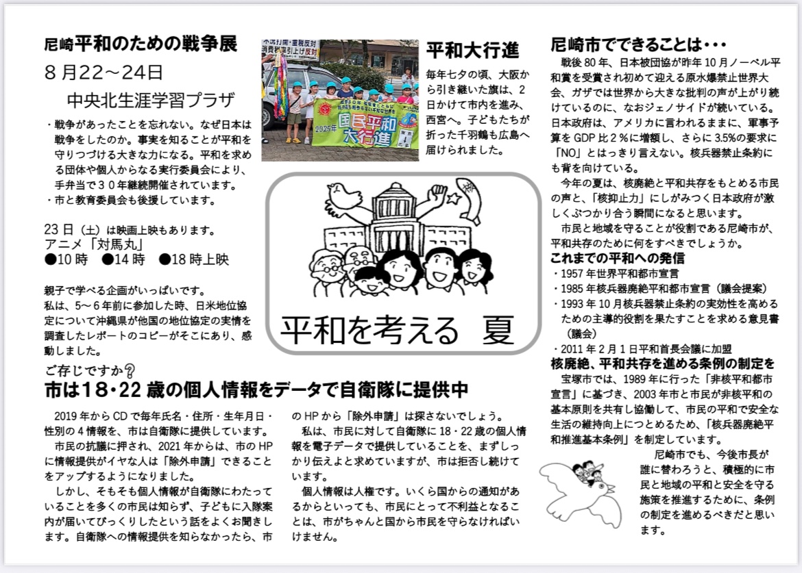 7月26.27日に参加した全国自治体学校の基調講演で、今、国は大軍拡を進め戦争できる国づくりに向かっている。市民のくらしを守る自治体として、それに抗う取組みは❓という問いかと、具体例が示されました。