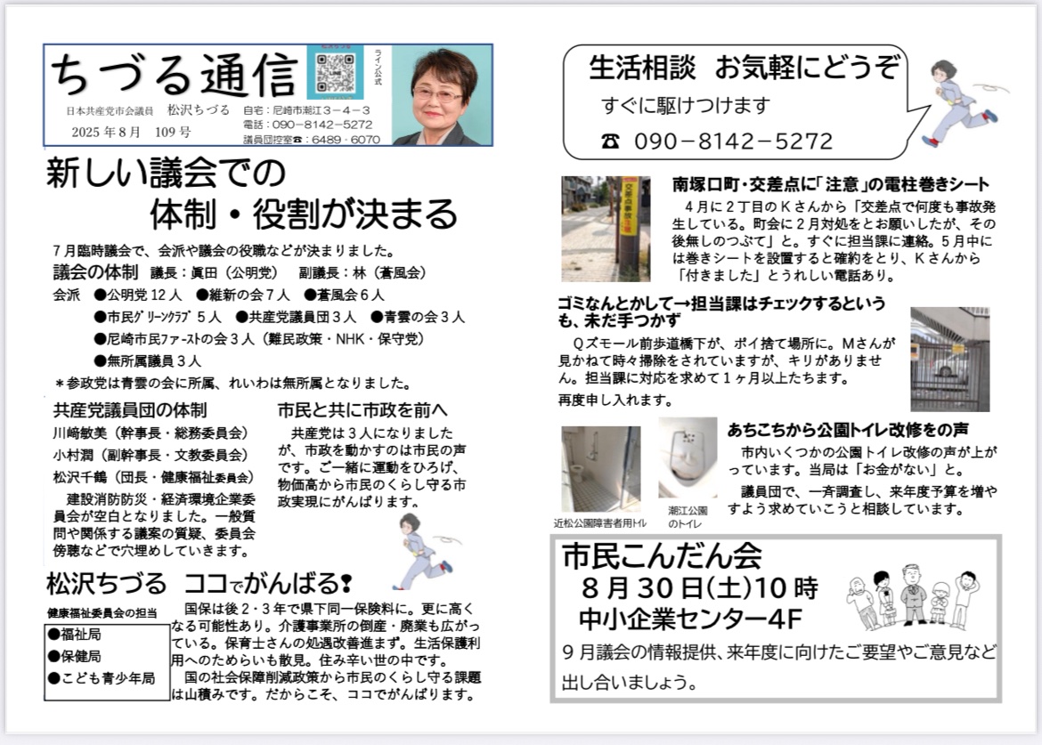 ちづる通信8月号を発行しました。