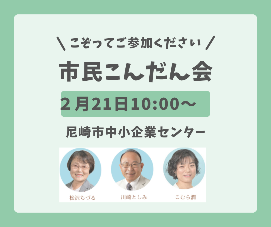 市民懇談会は2月21日です こぞってご参加ください 日本共産党尼崎議員団の市民懇談会のお知らせです 2月21日(土)午前10時から 尼崎市中小企業センター502号室 予算案などを審議する予算議会が開催されます。 この予算議会を前に市民の皆さんからご要望をお聞きする市民懇談会を開きます。 ぜひご参加ください。